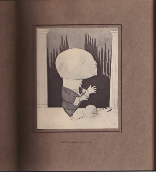 form. 23X19.Legatura edititoriale tutta tela con scritte e un disegno in oro. Con 48 caricature applicate a mano su cartoncino pesante marrone del celebre caricaturista inglese. (B.Shaw - A.Rodin - Chesterfield - Churchill - Rostand - D Annunzio e molti altri). Bella copia