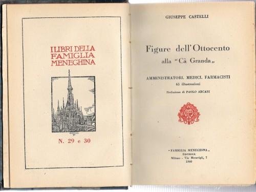 in 8° pp. XX, 607, leg. m/pelle azzurra, conservata la bross. originale ill. da Cisari, ds. a nervi con tit. e fregi in oro, piatti in carta marmor., tagli sup. rossi; piccola inc. all'antip. Prefaz. di P. Arcari, tratti dall'Archivio degli Istituti Ospitalieri di Milano, in questo vol. sono riportati fatti e personaggi grandi e piccoli che hanno contribuito a render grande questa istituzione, con biografie, documenti, lettere, racconti, poesie e 65 tavv. f.t.; copia n° 473 di 800, intonso. 238/36