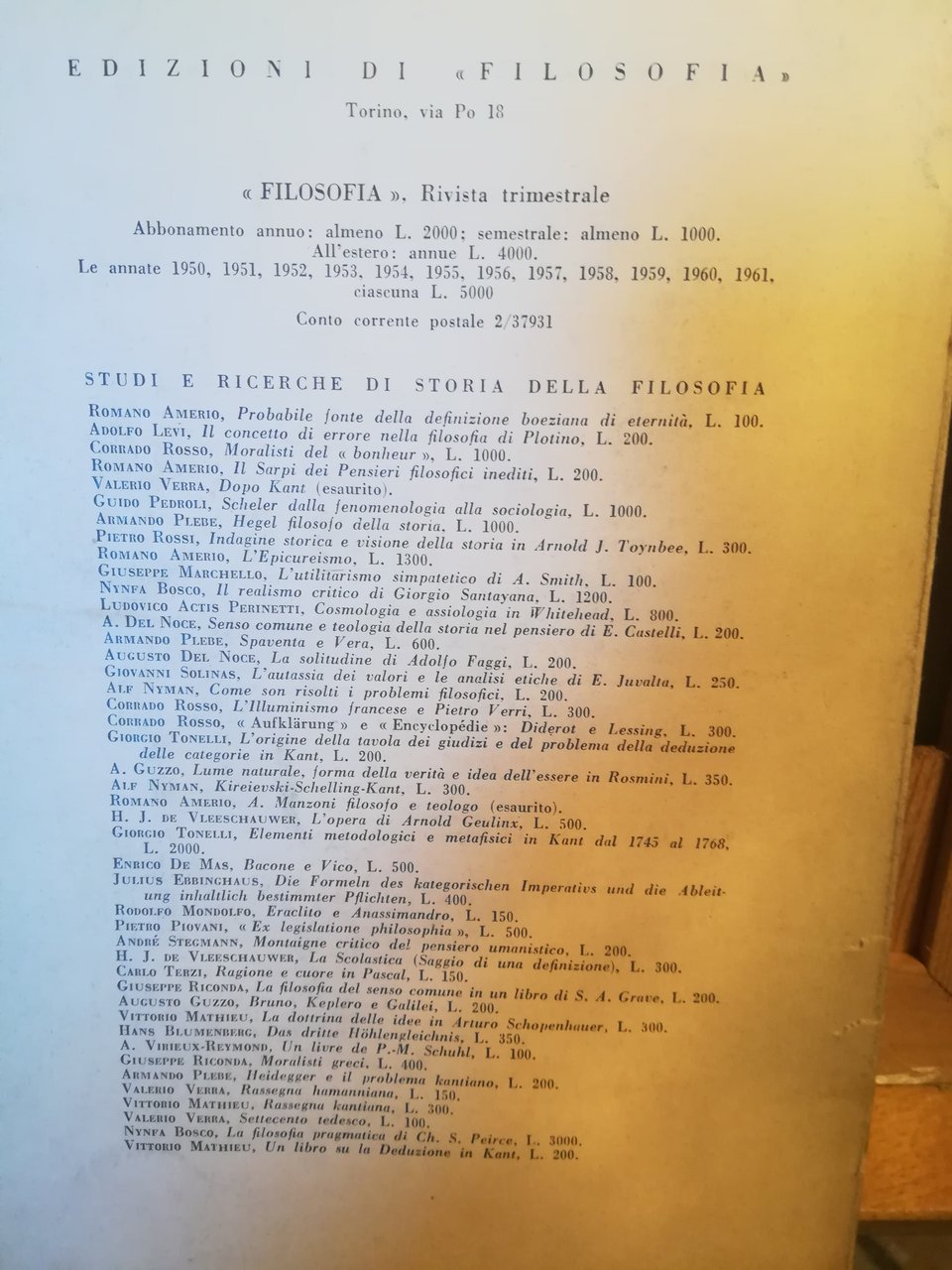 Copertina: cartonata, ingiallita, sporca lievemente. Tra l'altro: F.H.Jacobi, Schiavitù e libertà nell'uomo di Valerio Verra. Mediocre (Poor) .