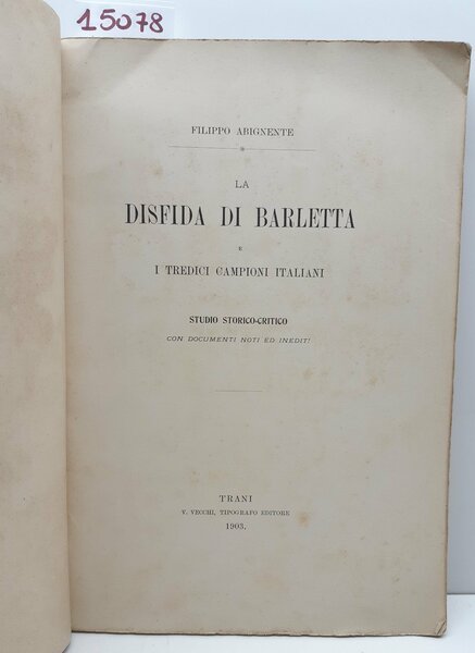 Filippo Abignente La disfida di Barletta e i 13 campioni italiani Trani Vecchi 1903
