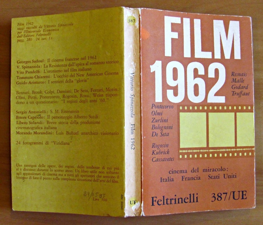 Resnais, Malle, Godard, Truffaut, Pontecorvo, Olmi, Zurlini, Bolognini, De Seta, Rogosin, Kubrick, Cassavetes. Collana Universale Economica N.387. Tavole fotografiche in b/n ante-retro f.t. del film Viridiana di Buñuel. Ed. Feltrinelli - Milano, 1962. Brossura editoriale con lievissime spellature sul dorso. 11x18; pp.274. OTTIMO STATO , Ottimo (Fine)