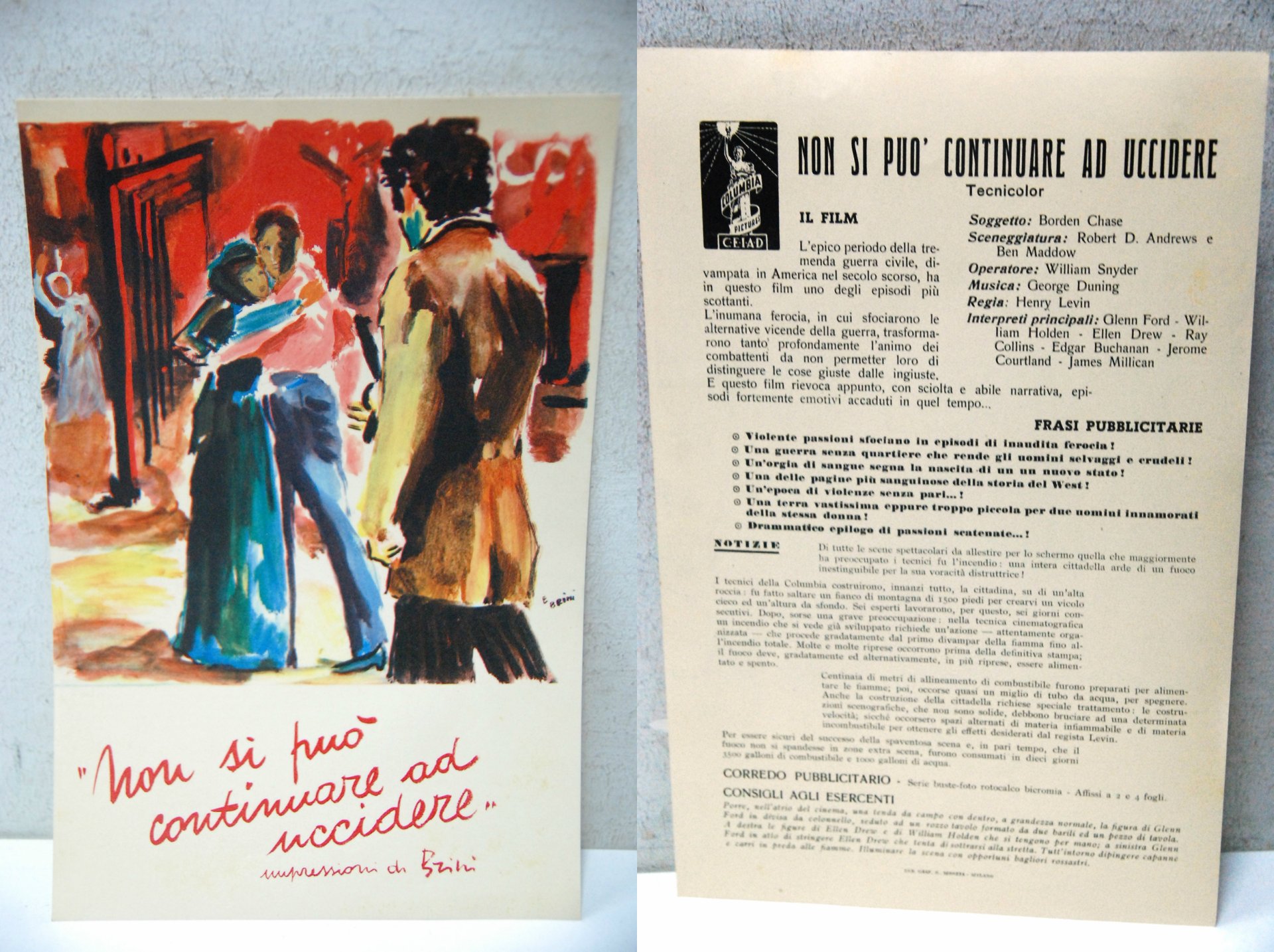 locandina pubblicitaria bozzetto cinematografico film non si può puo continuare ad uccidere. .