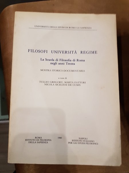 Filosofi universita' regime. La scuola filosofica di Roma negli anni trenta. Mostra storico-documentaria