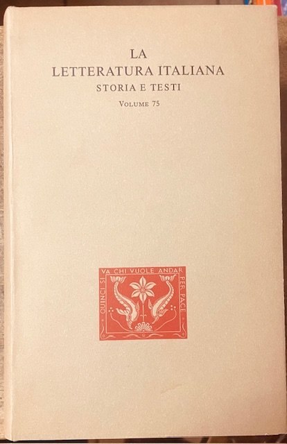 Titolo e fregi in oro su tassello colorato al dorso, sopracoperta, segnalibro in stoffa dorato, custodia cartonata, legatura in tela. (Pagine tratte da tutte le opere a cura dell'Autore. Tomo n. 75 appartenente alla Collana: "La Letteratura Italiana. Storia e testi").