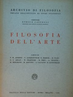 Filosofia dell'arte. Scritti di : T.W. Adorno - V. Jankelevitch - Marcel G. - Vlad R. - Argan G.C. - Fraenger W. - Frey D. - Chastel A. - Sedlmayr H. - Assunto R - Galvano A. - Guidobaldi E.