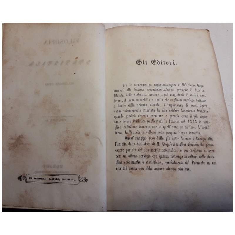 In 16, leg. in mz. pelle, dorso con nervi, titolo e Autore in oro al dorso, pp. XXVII+415 pi13 per le tavole sinottiche. Tracce d'uso alla cop., abrasioni al dorso e ai piatti, dorso danneggiato in prossimitdella cerniera, ammaccatura agli angoli superiori, tagli bruniti, fior. diffuse e segni del tempo, discrete condizioni. Luogo di pubblicazione TorinoEditore Lampato, Barieri e C.Anno pubblicazione 1852Materia/Argomento Statistica ***Due to bureaucratic reasons, books dated over 70 years old cannot be immediately exported, please contact us before placing the order.***