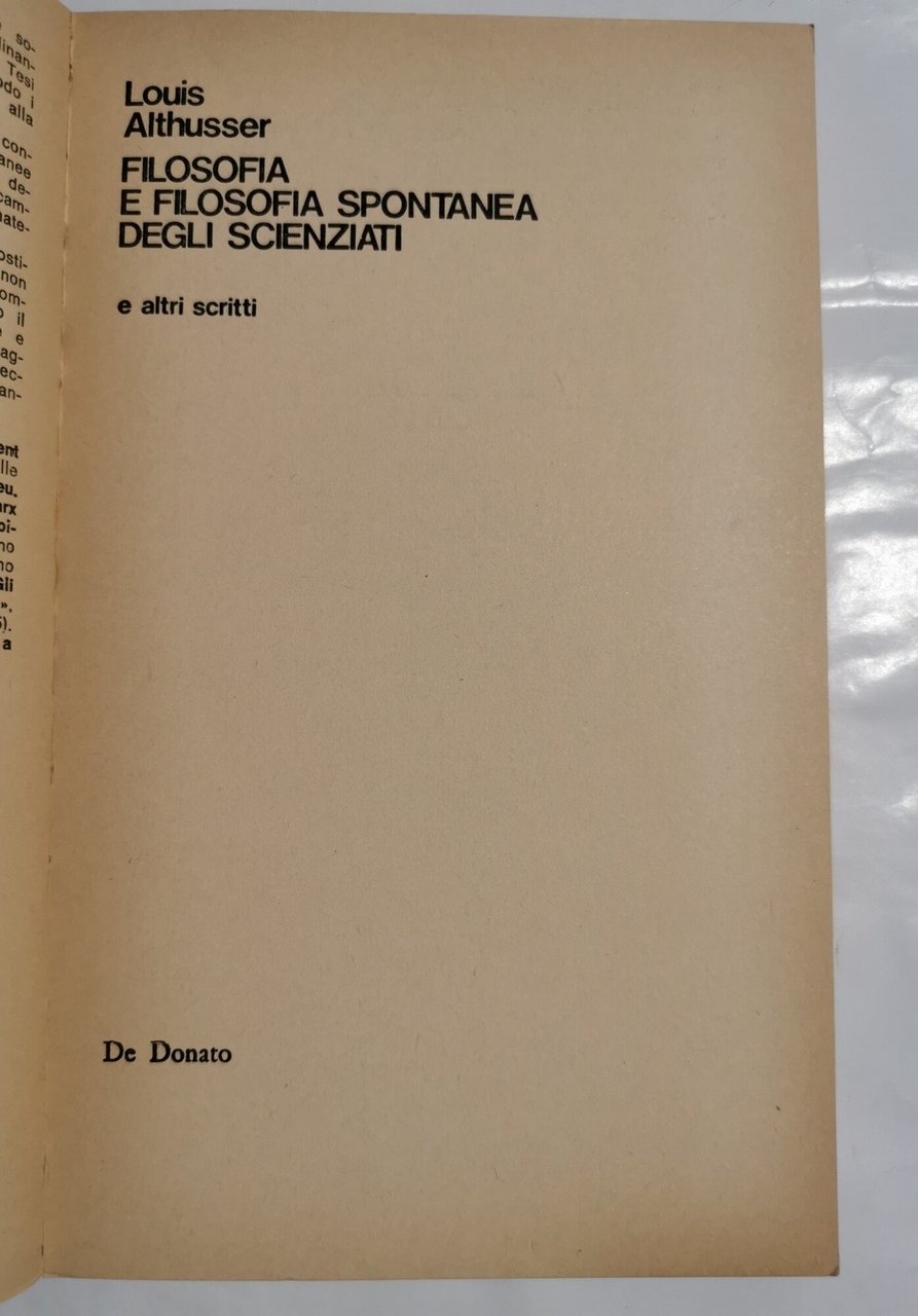 Filosofia e filosofia spontanea degli scienziati e altri scritti