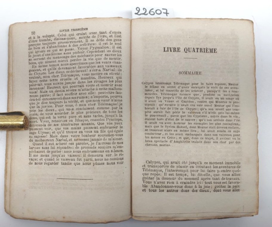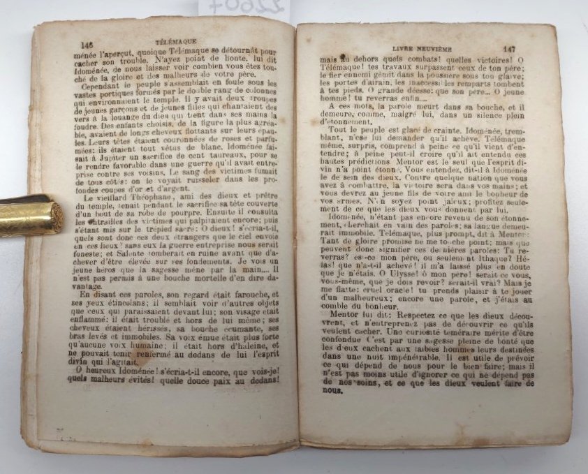 legatura morbida editoriale in precarie condizioni con piccoli strappi e pieghi ai margini dei piatti e del dorso, in francese, tagli irregolari bruniti impolverati quelli superiori, antiporta con ex libris, frontespizio con firma di possesso e una piccola mancanza al margine esterno inferiore, fioriture alle pagine interne, alcune pagine con margine inferiore non uniforme, numero pagine 400 dimensioni cm 16 x 10