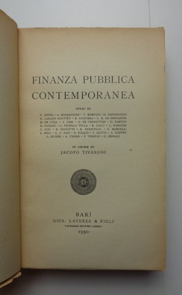 FINANZA PUBBLICA CONTEMPORANEA. Studi in onore di Jacopo Tivaroni.