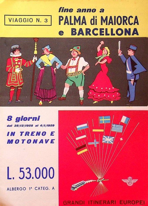 160x225 mm chiuso, 335x225 mm aperto. Condizioni : USATO - Stato : Buono, ordinari segni d'uso e del tempo. Altre note : All'interno programmazione degli 8 giorni a Palma di Maiorca e Barcellona (28/12/1958 - 4/1/1959).