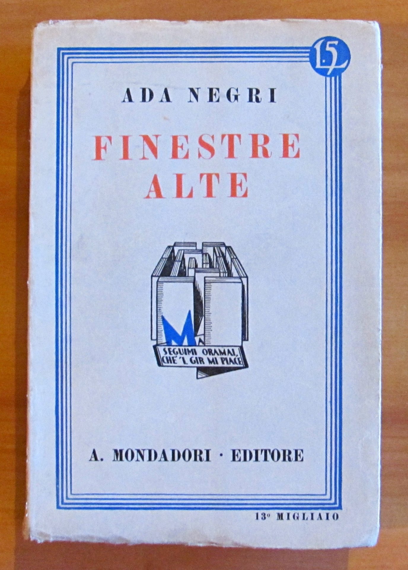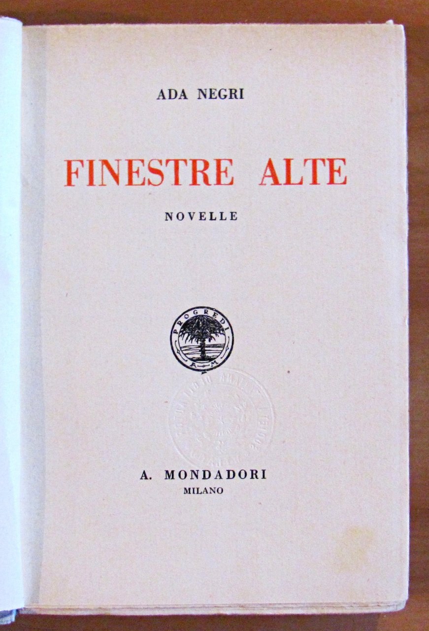 Mondadori - Milano, 1926. Brossura editoriale con ali. Piccolo taglio al margine esterno dell'occhietto. 13x19,5; pp.334. OTTIMO STATO , Ottimo (Fine)
