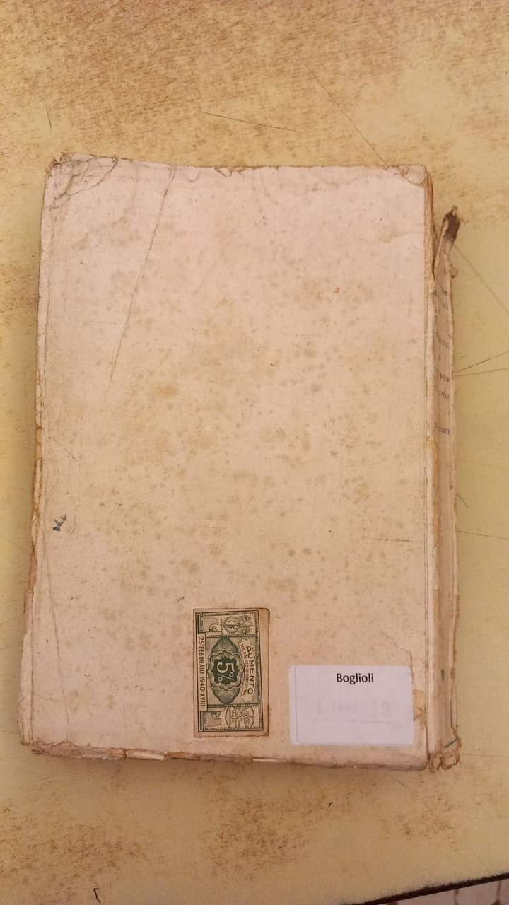 Il volume presenta mancanza di parte della copertina, tracce abbastanza vistose di umidità.