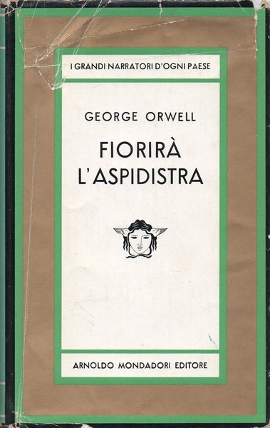 In-16° (18,7 x 11,3 cm), pp. 368, (4), legatura editoriale con sovraccoperta. Evidenti segni d'uso e del tempo alla sovraccoperta, in particolare: strappi e piccole mancanze ai bordi, rimarginati i primi, reintegrate le seconde, con carta giapponese applicata nella parte interna; sgualciture nell'angolo superiore sinistro della parte che copre il piatto anteriore; scoloritura alla parte che copre il dorso. Piccoli, lievi segni d'umido al taglio di testa. Per il resto, ben conservato. Titolo dell'opera originale: Keep the Aspidistra flying. Volume numero 438 nella collezione «Medusa», diretta da Elio Vittorini. Prima edizione italiana, settembre 1960.