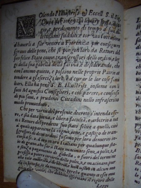 (Firenze) Bandi. PARTITO de molto Magnifici Signori Luogotenente et Consiglieri de 14 di Maggio 1555 sopra la gabella della farina
