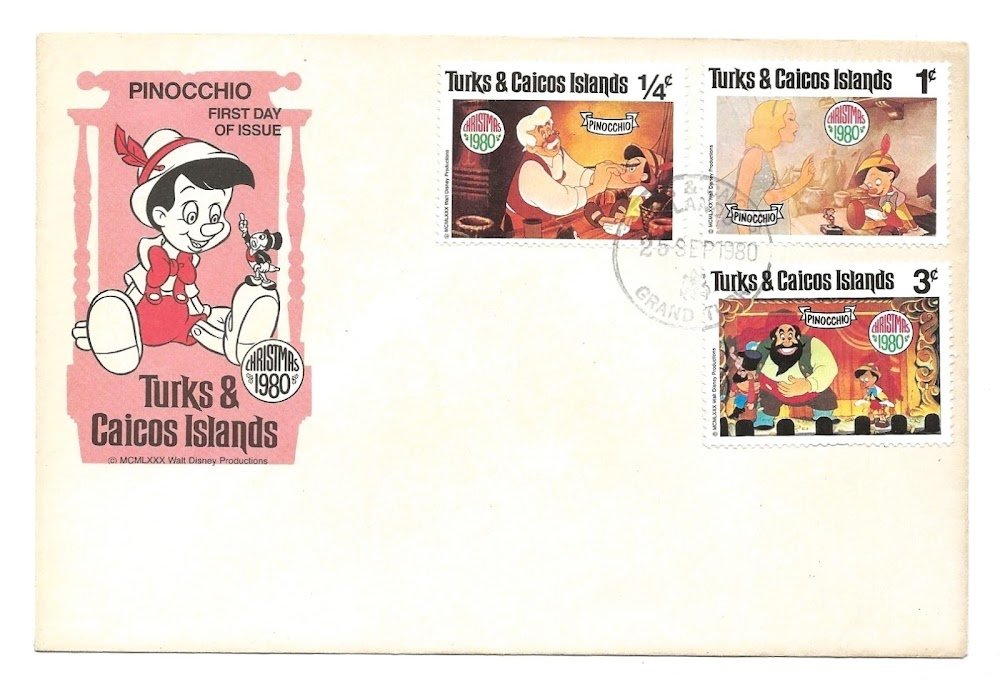 First Day of Issue PINOCCHIO - Turks & Caicos Islands, 1980