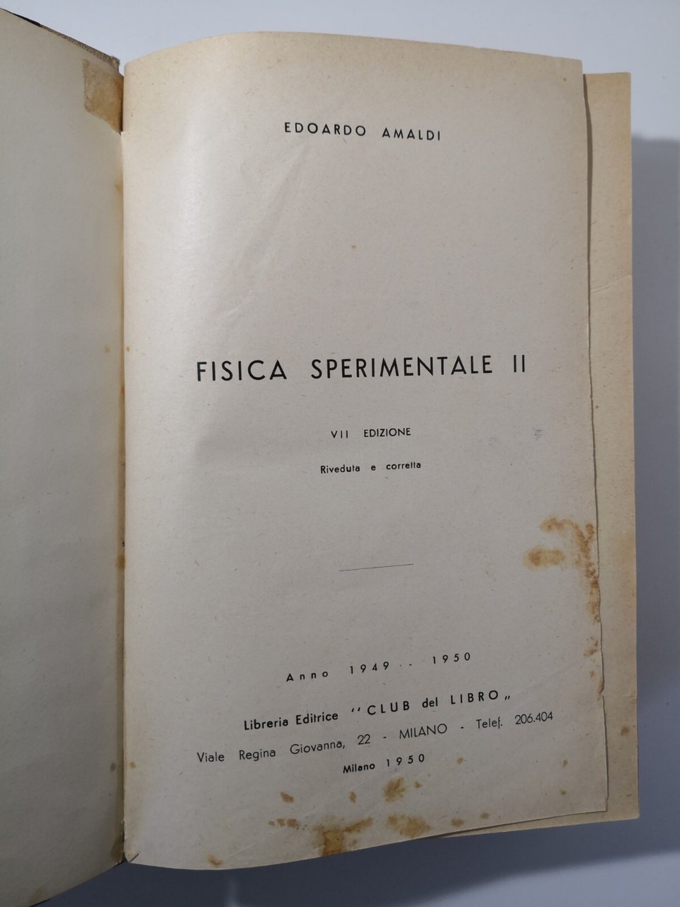 FISICA SPERIMENTALE II di Edoardo Amaldi 1950 Club del Libro manuale università