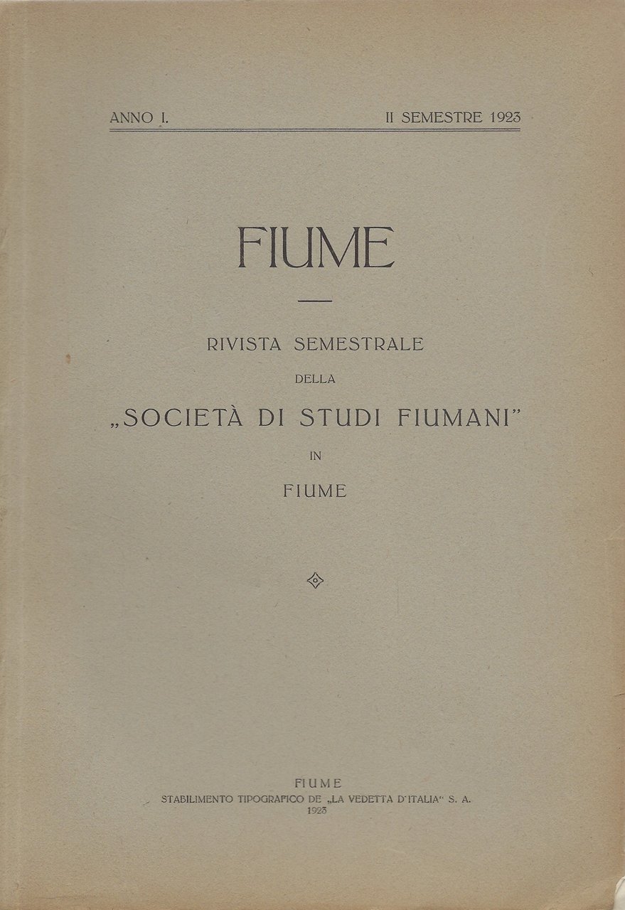 Fiume Rivista semestrale della -Società di Studi Fiumani-in Fiume (Anno I. I semestre 1923)