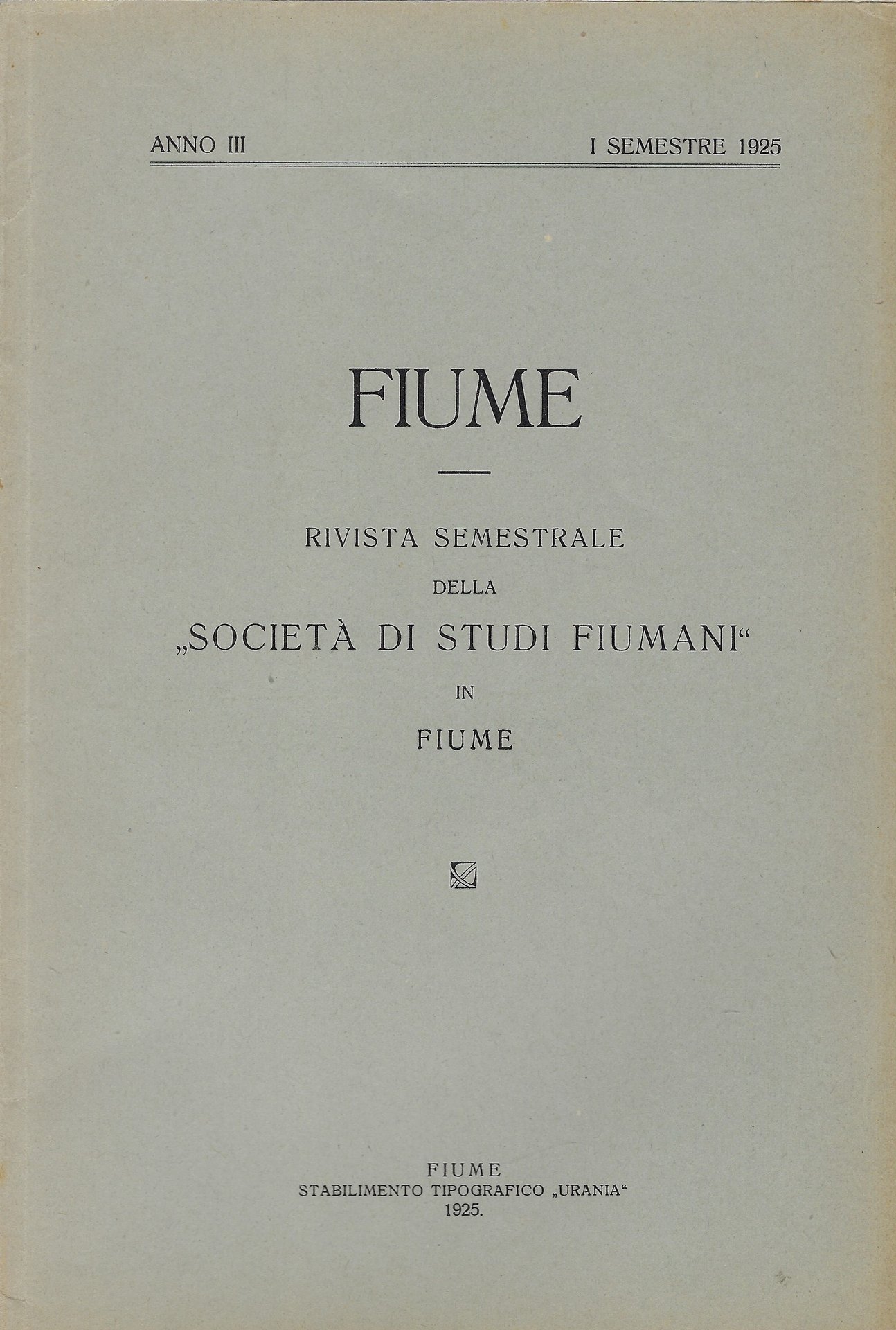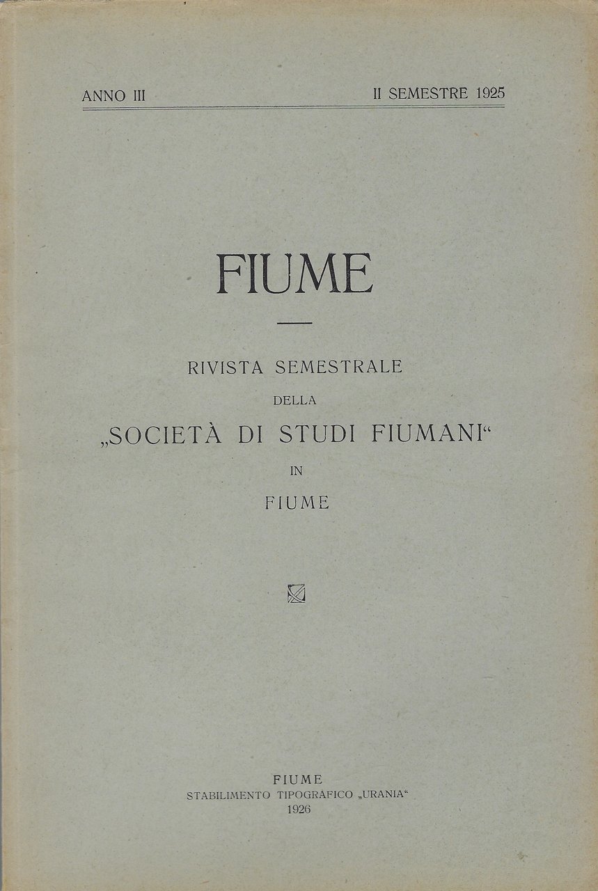 Fiume Rivista semestrale della -Società di Studi Fiumani-in Fiume (Anno III. I semestre 1925)