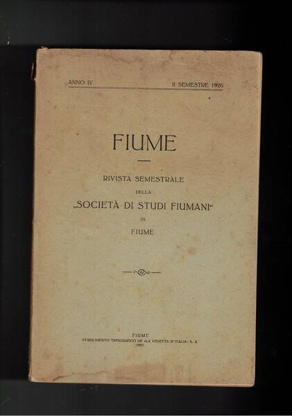 Fiume, rivista semestrale della società di studi Fiumani in Fiume. 2° semestre 1926. Un fiumano vescovo di Trieste; appunti su Molops della Liburnia; fenomeni di azione rivale sui nostri monti; catalogo dei fenomeni carsici sulla Liburnia; ecc.