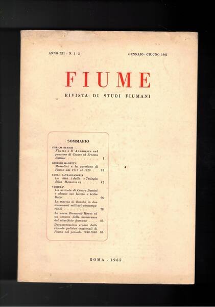 Fiume, rivista trimestrale di studi fiumani. Disponiamo dell'anno XII° 1965 in due semestri.