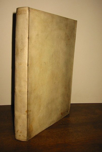 Folio (cm. 29,5), 4 cc.nn., 279(1) pp. Con 122 splendide xilografie n.t. (di cui 121 a piena pagina). Vignetta xilografica al frontespizio raffigurante una riunione di soldati di fronte ad una tenda ed altra grande illustrazione al verso raffigurante un artigliere nell’atto di caricare un cannone. Marca editoriale al verso dell’ultima carta (segue) Floro Lucio Anneo, L. Flori De gestis Romanorum libri quatuor a mendis accuratissime repurgati, una cum adnotationibus Io. Camertis. Ad haec, Sexti Ruffi viri consularis De historia Ro. epitome multo quam antehac emaculatior. Item, Messalae Corvini oratoris disertissimi De progenie Augusti Caes. libellus, nunc primum excusus., Basileae, apud Io. Hervagium Mense Martio, Anno 1532, 10 cc.nn., 126 pp., 1 c.nn. Marca tipografica al frontespizio ed al verso dell’ultima carta. Legatura seicentesca in pergamena rigida con unghie. Titolo ms. al ds. Tagli bleu. Nota anticamente ms. sulla carta di guardia libera anteriore. Una firma di appartenenza parzialmente cancellata ed un timbretto araldico nella parte inferiore del frontespizio. Sporadiche macchie e lievi aloni. Un restauro all’angolo inferiore delle pp. 181-182 che interessa in minima parte le xilografie. Alcuni leggeri segni d’inchiostro sull’ultima carta della seconda opera. Nel complesso, esemplare in più che buono stato di conservazione. L’opera di Vegezio è qui nella prima rara edizione del tipografo Wechel che poi la ristampò nel 1534 e nel 1553. Oltre che per il commento dell’umanista francese Guillaume Budé, questa edizione è particolarmente apprezzata per le grandi xilografie che trasportano il testo di Vegezio in un contesto prettamente rinascimentale nel quale predominano gli aspetti legati all’ingegno e alla fantasia umana. In questo ambito risultano davvero affascinanti le invenzioni e gli svariati stratagemmi raffigurati per scalare le mura delle fortificazioni o per costruire le più diverse macchine belliche. Opera assi rara alla quale, nel nostro esemplare, ai testi di Vegezio, Frontino, Eliano e Modesto, è stata unita la storia dei Romani di Floro edita dal Wechel nello stesso anno. Adams, V-331 e F-642; Br. Libr., p. 436. Manca a Cockle.