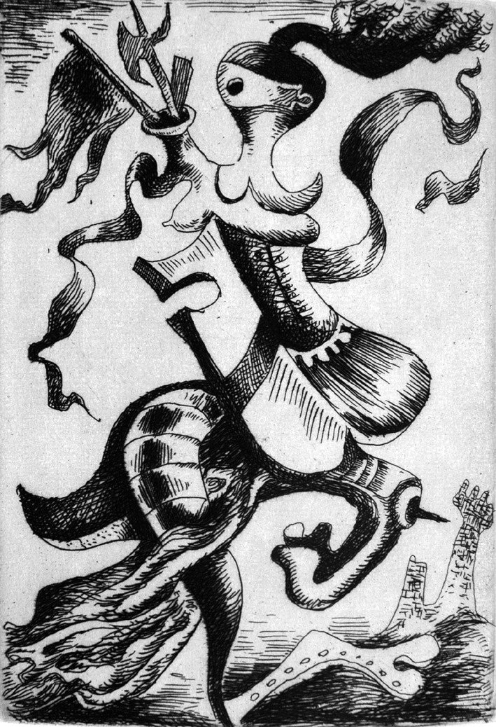 8° gr.; pp. 31 su carta a mano Hollande van Gelder con fogli in parte a grandi margini integri; con tre acqueforti f.testo a piena pagina del noto Artista (1900-1962). Nato a Basilea, Kurt Seligmann svolse una discreta attività grafica (oltre 110 lavori) sempre nell'ambito del movimento informale, surrealista. Brochure edit. con titoli al dorso e al piatto; edizione tirata a complessivi 145 esemplari numerati; un bel ex-libris di appartenenza. Cfr. Monod n.3075.<BR>(vedi riproduz.)