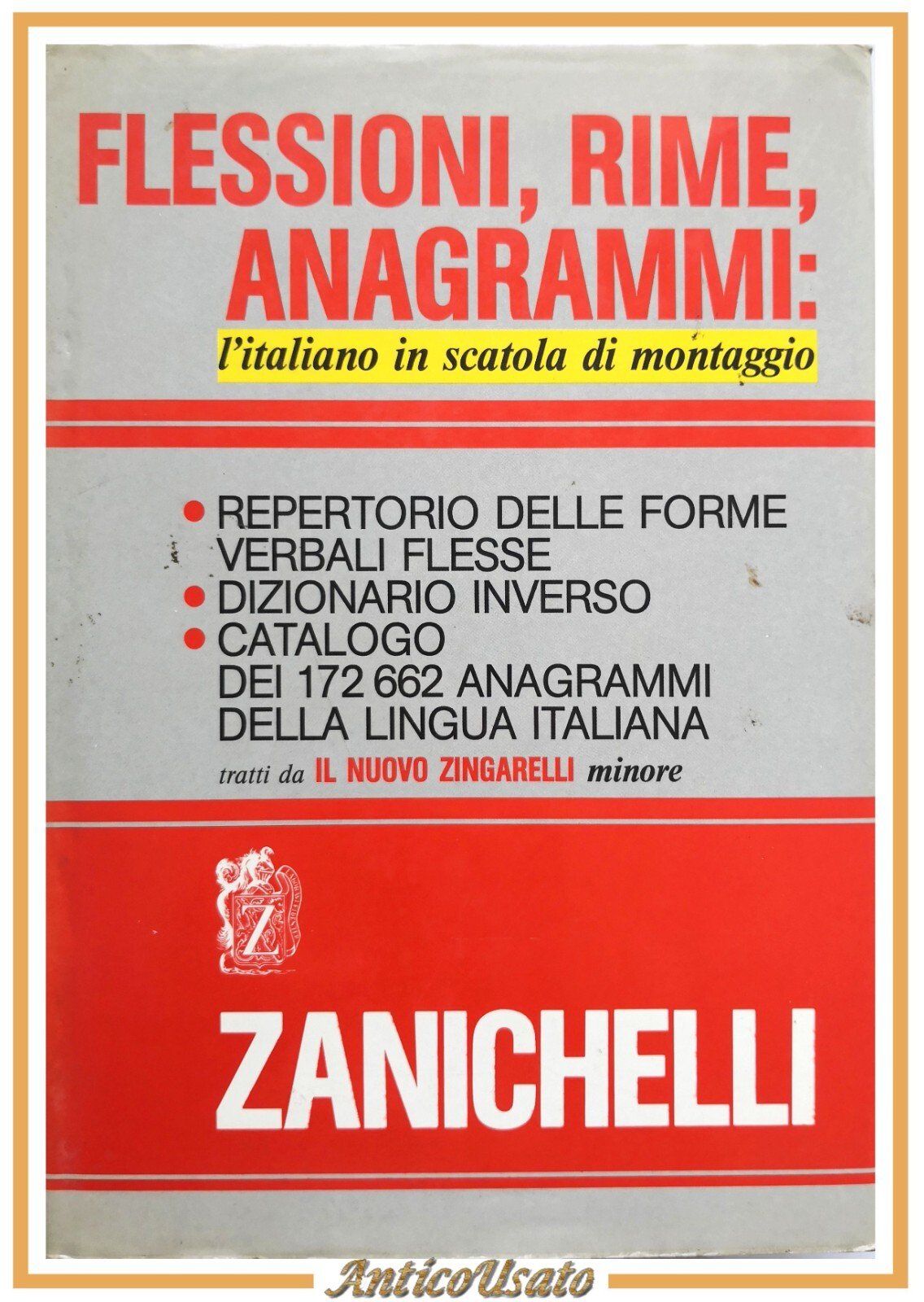 FLESSIONI RIME ANAGRAMMI l'italiano in scatola 1988 Zanichelli Libro dizionari
