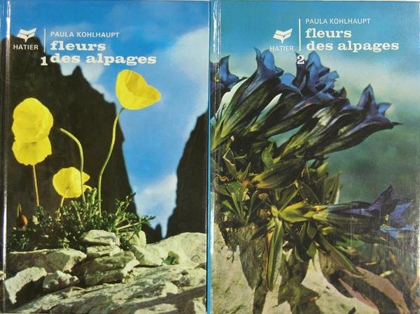 Edition Hatier, collection "Couleurs de la nature", 1976 & 1978. 2 volumes in-8 (19 x 12 cm) cartonnage éditeur illustré en couleurs, nombreuses photographies en couleurs de l'auteur, 256 & 256 pages. Notions botaniques, répartition par famille, genre, espèce, renseignements pittoresques sur la vie curieuse de la flore de montagne, utilistation de ces plantes dans la médecine de l'Antiquité et de la médecine populaire des siècles passés