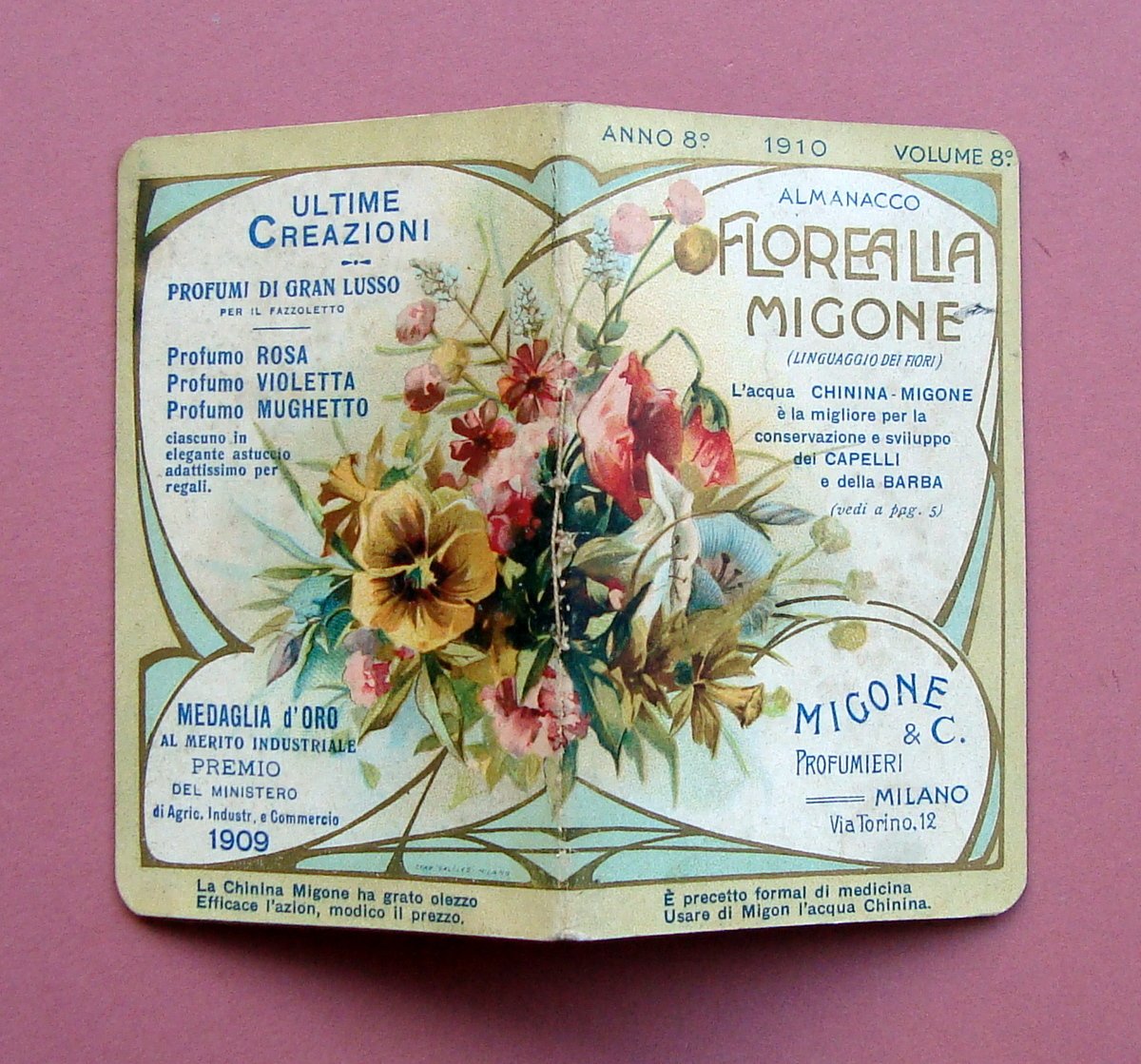 Florealia Migone Calendarietto barbiere 1910 cromolitografie ottimo