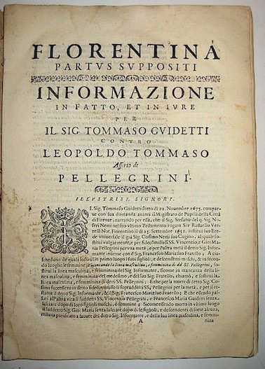 Florentina partu suppositi. Informazione in fatto, et in iure per il sig. Tommaso Guidetti contro Leopoldo Tommaso Asserto de Pellegrini