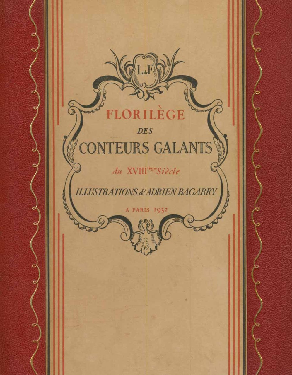 In-8 gr., 2 volumi, bella legatura edit. in mz. marocchino, dorso a cordoni con fregi e titolo oro, tagli super. dorati, conserv. copertine orig., pp. (6),III,316,(7); (6),325,(3); ornati da fregi, vignette e finali disegnati da Boris Grosser; i titoli dei racconti, la cornice che inquadra il testo e i capilettera sono stampati in rosso. Bella edizione illustrata fuori testo da 40 tavole in bianco e nero e 24 a colori, che riproducono gli affascinanti acquarelli di Bagarry. Questa antologia contiene 18 racconti galanti di celebri scrittori (da Denis Diderot, Restif de la Bretonne, Jacques Cazotte a Voltaire, Crébillon, Vivant Denon e altri). Cfr. Benezit,I,373. Esemplare molto ben conservato.
