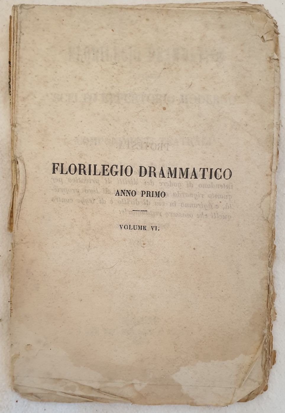 FLORILEGIO DRAMMATICO OVVERO SCELTO REPERTORIO MOIDERNO DI COMPONIMENTI TEATRALI ITALIANI E STRANIERI ANNO PRIMO VOL. VI