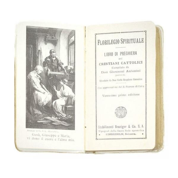 Autore: Don Giovanni Antonini, riveduto da Don Carlo Roggiero Canonico Titolo: Florilegio spirituale - libro di preghiera per cristiani cattolici - compilato da Don Giovanni Antonini Edizione: Stabilimenti Benziger Dimensioni: 12x6,5 cm Pagine: 552 Copertina: Rigida Condizioni: Buone come da foto