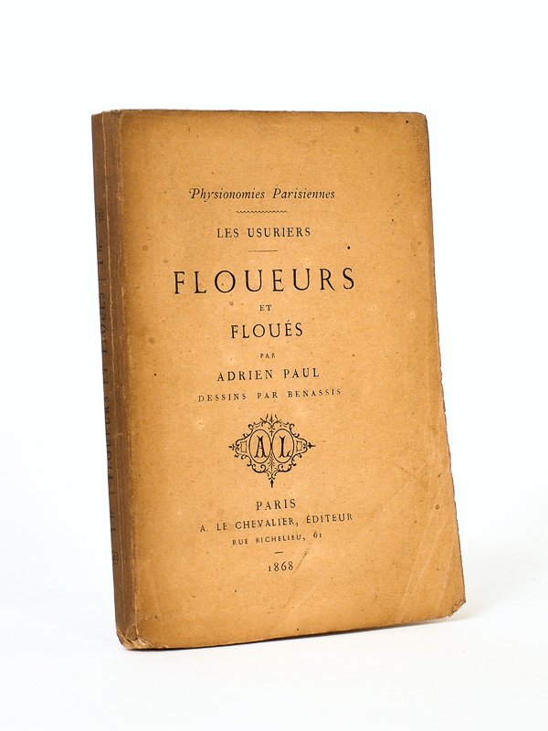 1 vol. in-18 br., dessins noir et blanc, coll. Physionomies parisiennes, A. Le Chevalier éditeur, Paris, 1868, 127 pp. Etat très satisfaisant pour ce petit livre humoristique, qui croque les usuriers à Paris au XIXe siècle