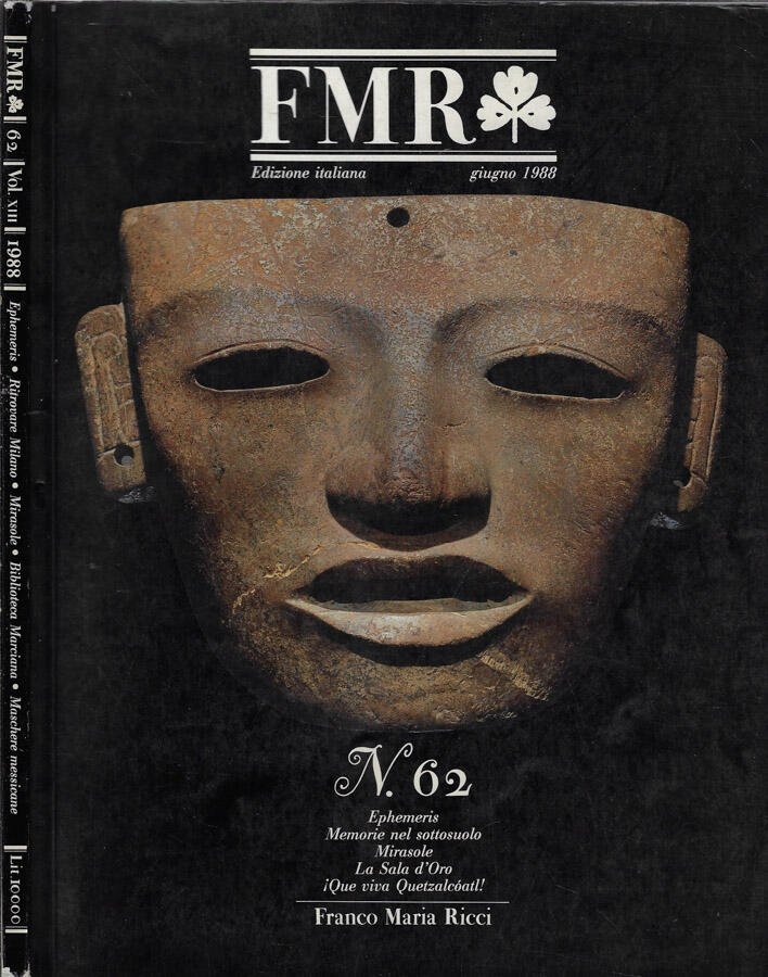 Annata incompleta composta da una sola uscita del periodico "FMR" anno 1988 N. 62 rispettivamente del mese di giugno. Brossura illustrata presentante lievi segni di usura da scaffale ai margini e leggere tracce di usura da sfregamento ai piatti. Pagine in buono stato anche se già sfogliate e minimamente ingiallite dal tempo. Numerose illustrazioni a colori ed in b/n. Numero pagine 110.