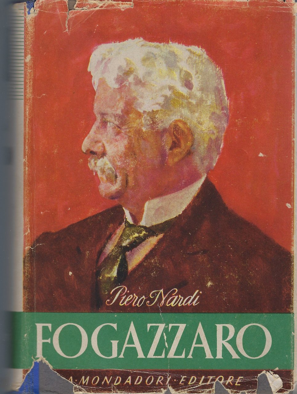 Sovraccoperta strappata in più parti e con pezzettini mancanti.