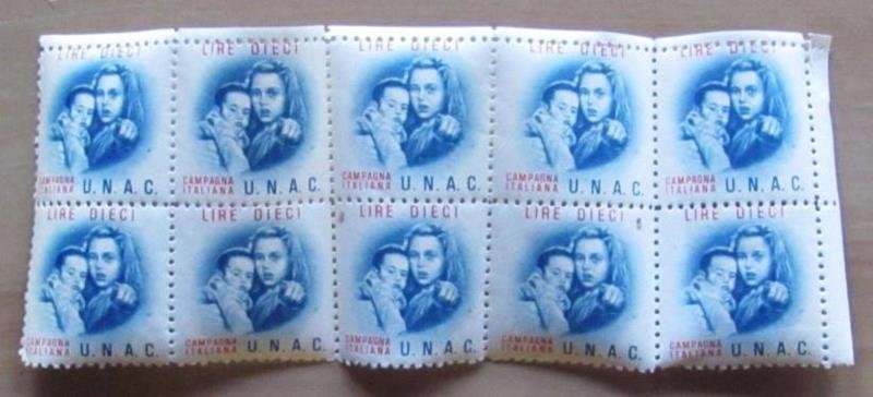 Foglio 10 Francobolli Campagna Italiana U.N.A.C.