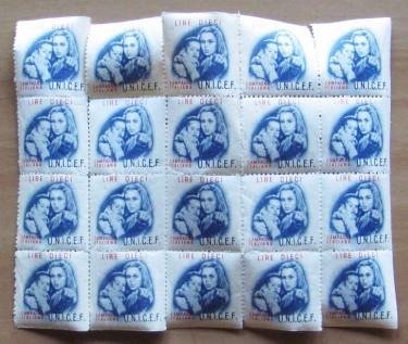Foglio 20 Francobolli Campagna Italiana U.N.I.C.E.F.