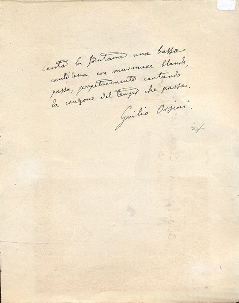 Orsini Giulio (Roma 1838 - Roma 1915). Poeta Critico. Foglio d'album, prosa manoscritta, una facciata , 4 righe. Firma autografa per esteso.