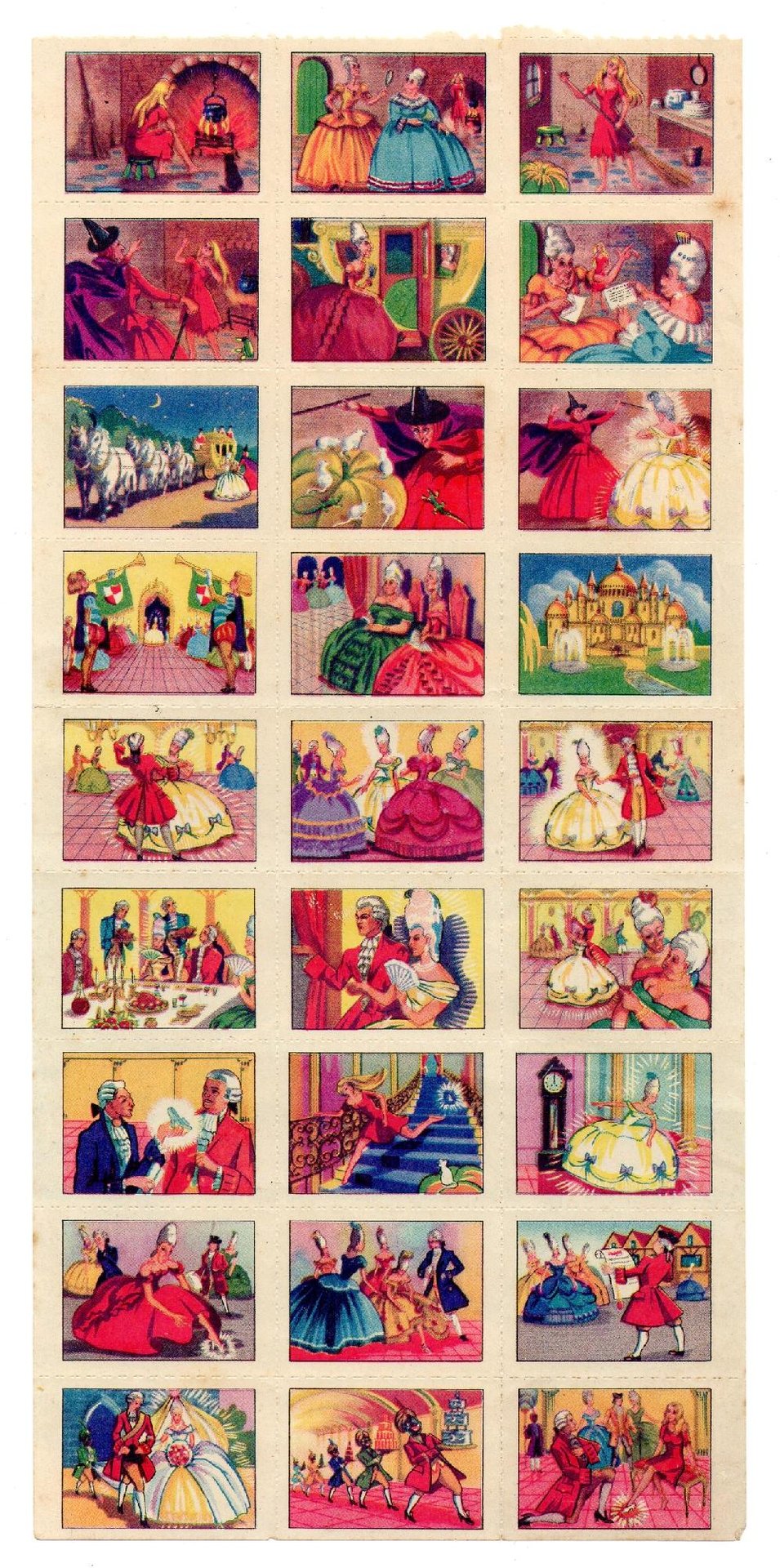 Cenerentola - Tutta la Fiaba narrata in Decalcomanie. Foglio con 27 splendide decalcomanie a colori ancora brillanti. Edizione Anonima, s.d. anni '40. Foglio 13x27. Raro, Ottimo stato. , Ottimo (Fine)
