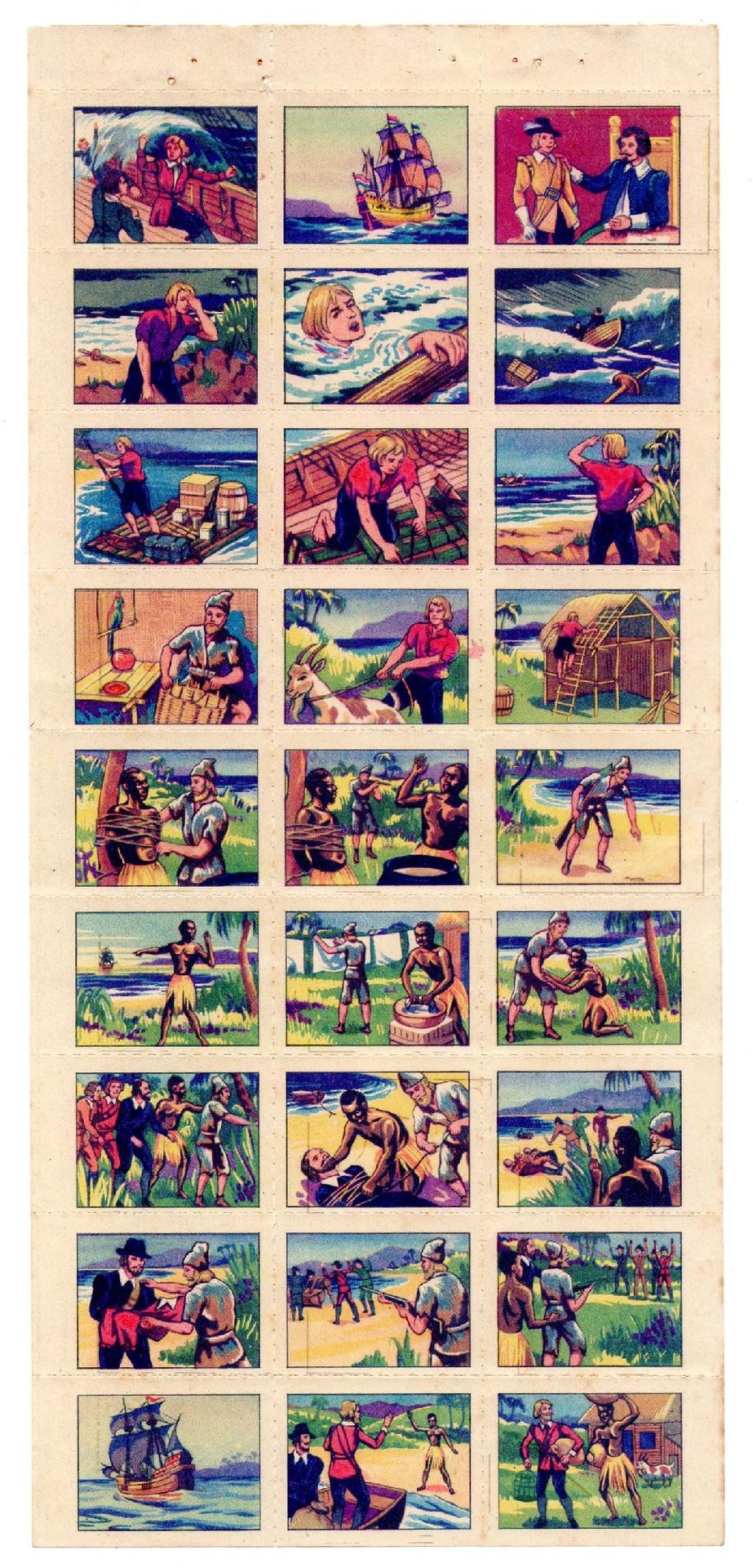Foglio di 27 DECALCOMANIE ROBINSON CRUSOE, anni '40 - RARO