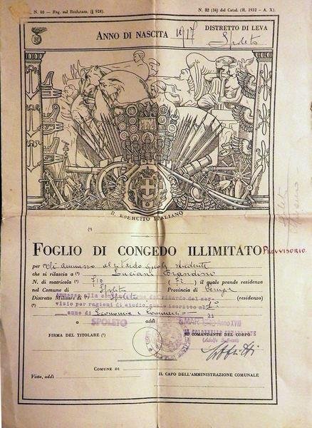 Foglio Di Congedo Illimitato ( Provvisorio). Fascismo