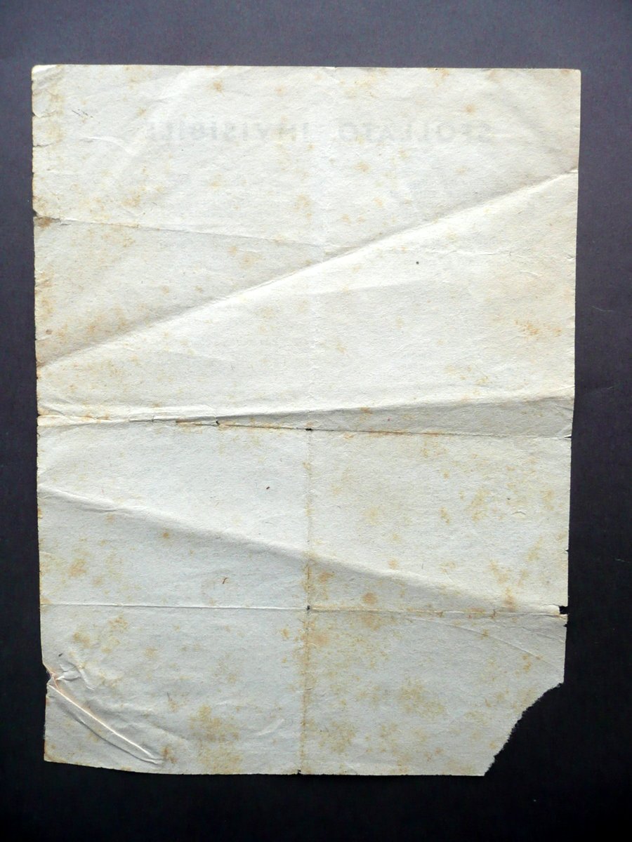Foglio volante, Sfollato invisibile" Zirudela (poesia dialettale) di Piazza Marino detto il "Poeta contadino" Anni Venti del Novecento S. d. (anni Venti del Novecento circa); poesia dialettale a stampa su foglio in carta; testo disposto su due colonne. Cm 21x16. Condizioni di conservazione Esemplare in condizioni più che discrete con tracce d'uso; leggere tracce di pieghe di conservazione; alcune piccole lievi bruniture; angoli inf. rispettivamente con una circoscritta mancanza e con una leggera stropicciatura; margini con qualche minimo strappetto. Bella poesia dialettale ("zirudela") di Piazza Marino, "detto il poeta contadino / sempre pronto con allegria / per darvi a tutti la poesia". La poesia è stata composta in un dialetto dell'area modenese. SC03.D12068 N "