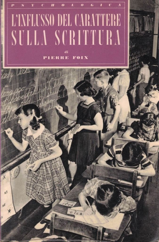 Pierre Foix, L’influsso del carattere sulla scrittura, Edizioni Paoline, s.l. (ma stampato a Roma, presso la Pia Società San Paolo) 1956, pp. 181, ill. b.n., cm 18, br. ed. Collana Psychologica, vol. 30. Titolo originale: L’influence du caractère sur l’écriture. Traduzione dalla terza ed. francese di R. Silvano. Leggere tracce d’uso, minime fioriture, lieve ingiallitura della carta, per il resto buona copia.