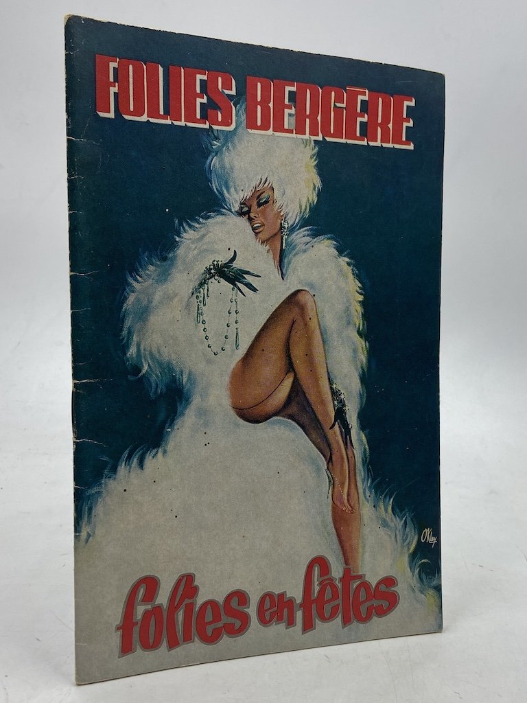 Programma teatrale in brossura, spillato, cm14x21, pp (20) illustrate in nero, copertina a colori di Pierre Okley. Programma delle Folies Bergère di Paul Derval, col “SUPER SPECTACLE EN 2 ACTES ET 40 TABLEAUX “Follie en Fêtes” di Michel Gyarmathy; fotografie di Paul Ferval e signora (Antonia Maria France Carle), Michel Gyarmathy, Yvonne Ménard, Franca Duval, Frédéric Rey, Jacqueline Brunard e numerose pubblicità di alcolici e profumi.
