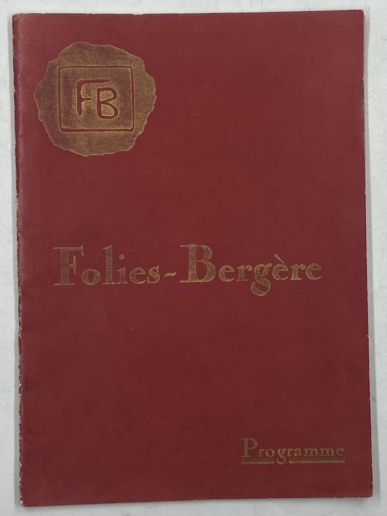 Brossura spillata, cm15x22, pp (40) illustrate in nero. Programma della sala parigina, con numerose immagini di interpreti inclusa Josephine Baker, e due foto degli spettacoli (Walery). Discreto stato.
