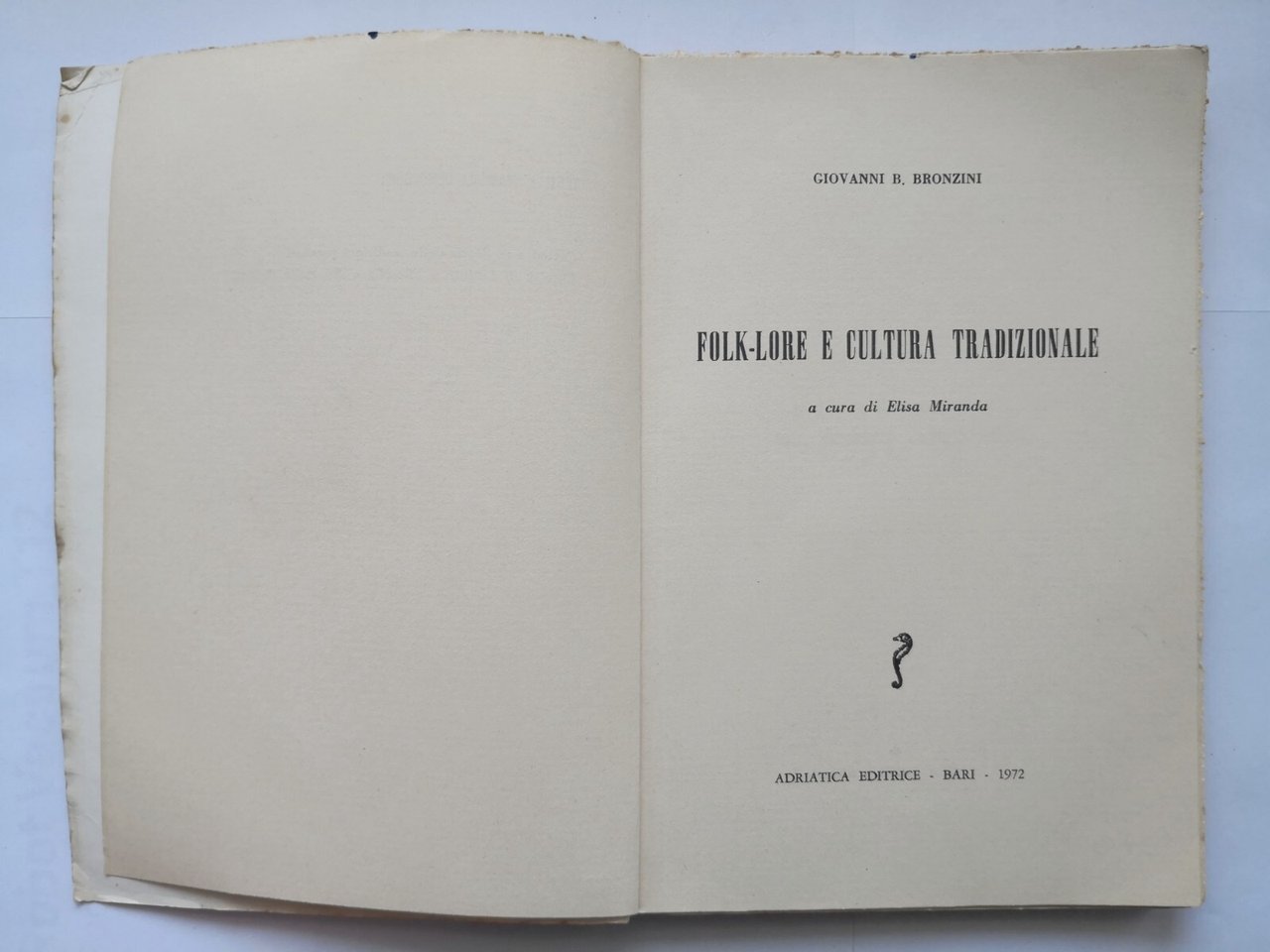 FOLK-LORE E CULTURA TRADIZIONALE di Giovanni Battista Bronzini a cura di Elisa Miranda.