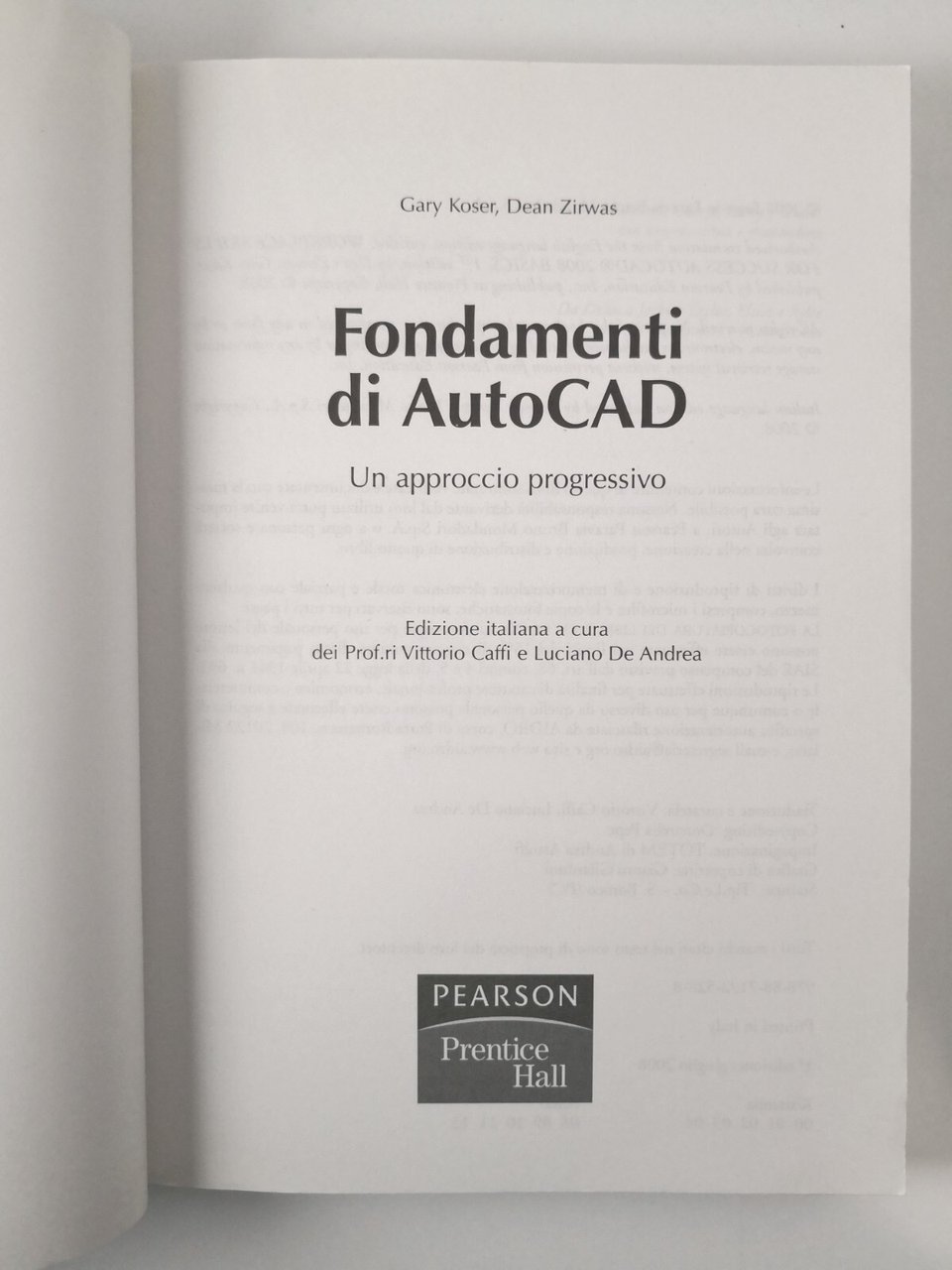 FONDAMENTI DI AUTOCAD Un Approccio Progressivo di Gary Koser e Dean Zirwas. Edizione Italiana a cura dei Prof.ri Vittorio Caffi e Luciano De Andrea.