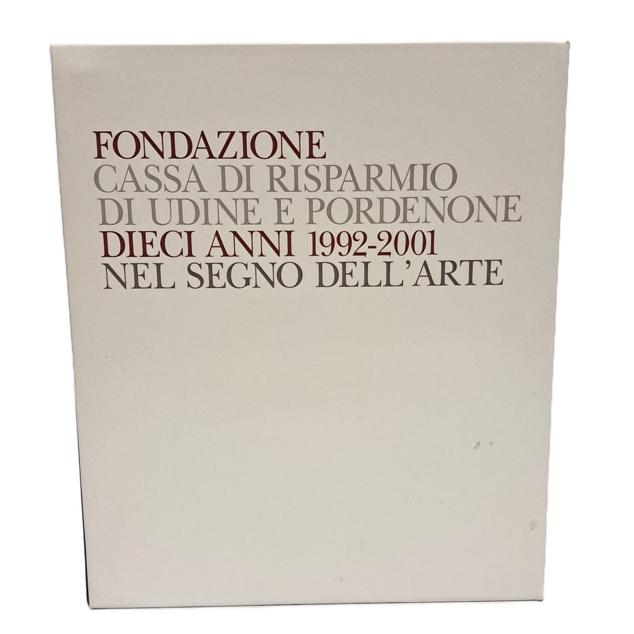 PRIMA EDIZIONE, pubblicazione in due volumi: Dieci anni 1992-2001 nel segno dell'arte e Dieci anni 1992-2001 uomini e giorni La Fondazione Cassa di Risparmio di Udine e Pordenone, nata nel 1992, ha assunto la nuova denominazione “Fondazione Friuli” per tempo dal 23 dicembre 2016. Possiede una collezione di oltre cinquecento opere d'arte tra sculture, incisioni, disegni e dipinti, alcune esposte in musei della Regione Friuli Venezia Giulia per la loro singolare importanza e delicato stato di conservazione. Le opere sono databili dal XVI secolo sino a oggi e testimoniano l'originale lavoro di artisti friulani del Novecento come Afro e Mirko Basaldella, Giuseppe Zigaina, Luciano Ceschia, Carlo Ciussi, Fred Pittino, Marcello D'Olivo, Ernesto Mitri, Anzil. Questa pubblicazione riassume dieci anni di restauri effettuati con il sostegno della Fondazione Cassa di Risparmio di Udine e Pordenone, un lungo elenco che testimonia la molteplicità e varietà di interventi, motivati non solo dalla preoccupazione di rimettere in piedi capolavori, ma anche oggetti dal prevalente valore documentario. Copertine cartonate e cofanetto. Pp. 326+156. Ottime condizioni.