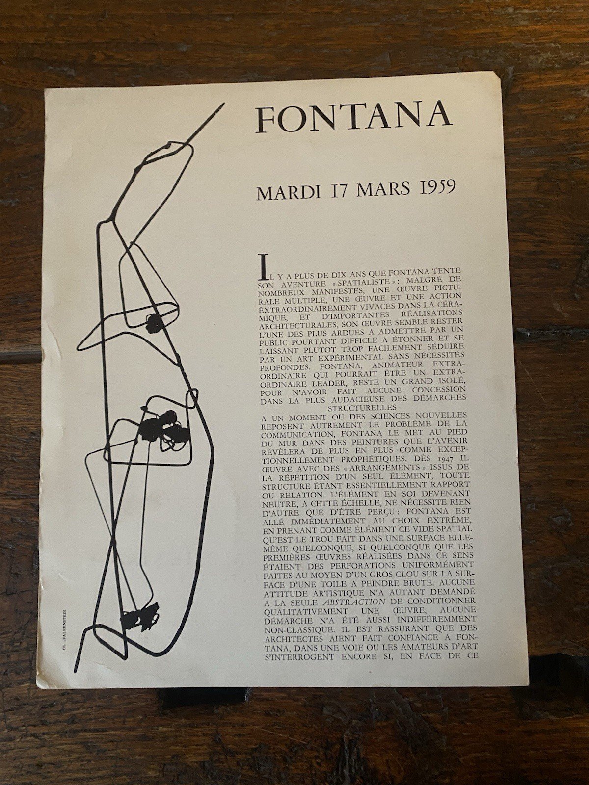 Fontana Lucio Invito 27 x 21 cm. Paris Galerie Stadler 1959